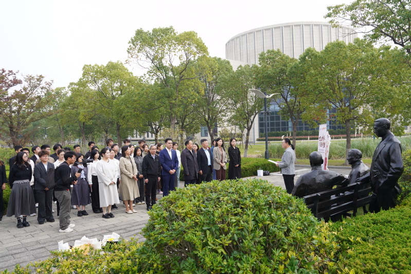 校党委书记王宏舟、校长胡炜与师生代表,向张镠校长铜像献花,纪念和缅怀张镠校长为水产教育事业迎难而上、呕心沥血、艰苦奋斗、自强不息的创校精神。